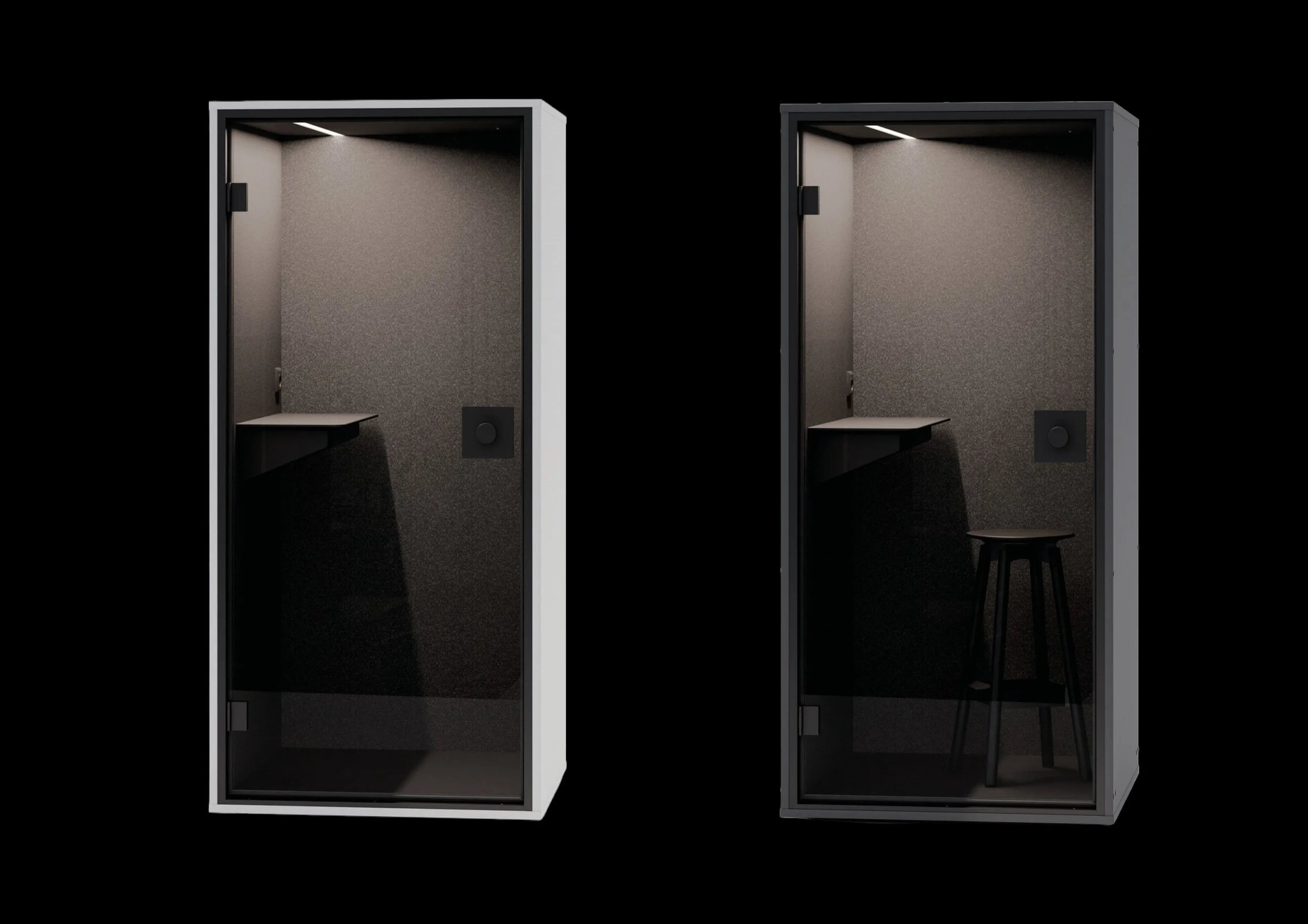 Die Telefonbox Focus gibt es in zwei Ausführungen: Schwarz oder Weiss. Je nachdem was in Ihre räumliche Umgebung passt. Beide Kabinen erfüllen die höchsten akustischen Eigenschaften und bieten für einen unschlagbaren Preis einen echten Mehrwert für jedes Büro. Die beliebten Kabinen führt die Bellton AG ab eigenem Lager in der Schweiz. Besuchen Sie unseren Showroom und lassen Sie sich von der einzigartigen Qualität überzeugen.