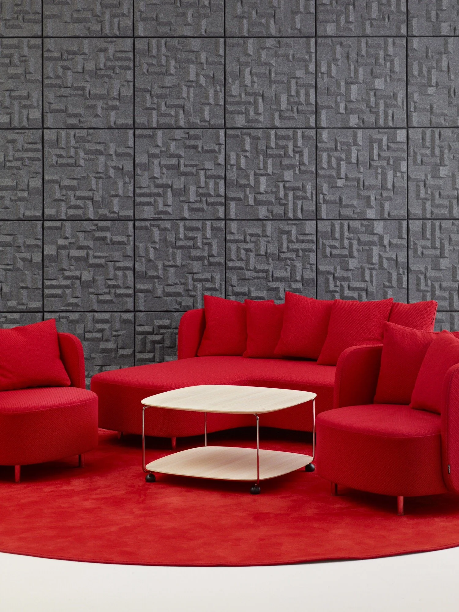 Galeriewand trifft Akustik: Mehrere kleinere Akustikbilder nebeneinander zu einer Bildgalerie, statt „leerer“ Wände.