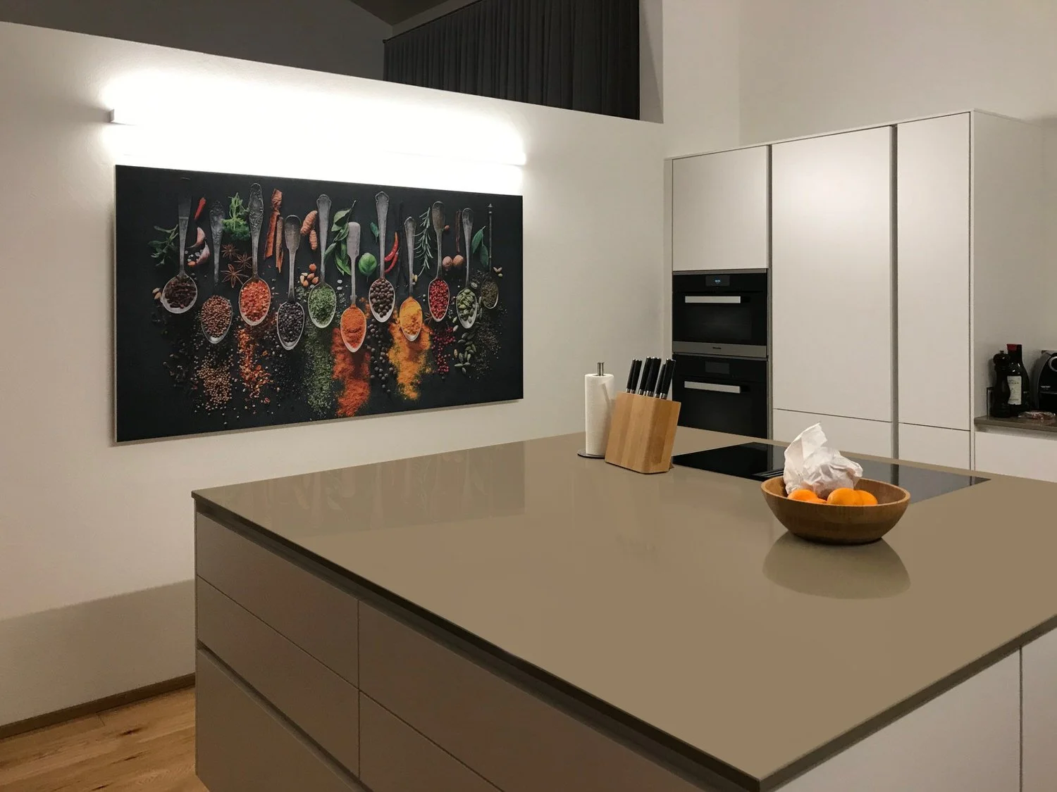 Kontrast & Tiefe: Ein dunkler Hintergrund (z. B. Wandfarbe) kann das Akustikbild stärker hervorheben, besonders bei starken Motiven